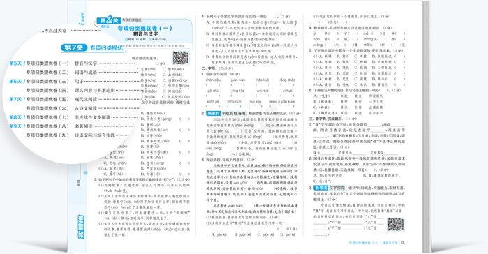 根据校内考试专题科学划分;由真题组卷;对重点难点易错题、附加题进行了标注;大量 融入了四大新趋势题;英语分经典考法与新考法两种卷,不仅有难度划分,还包含考法划分,提升学生对各类题型的适应能力。
