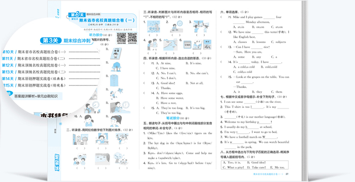 省市名校真题组合卷+顶级名校真题优组卷+原创押题实战卷,三种卷。优组卷、情境卷参 照全国顶级名校的期末考试命题模式,设题灵活,助力学生把握命题新趋势,语文、英语融入情境卷。