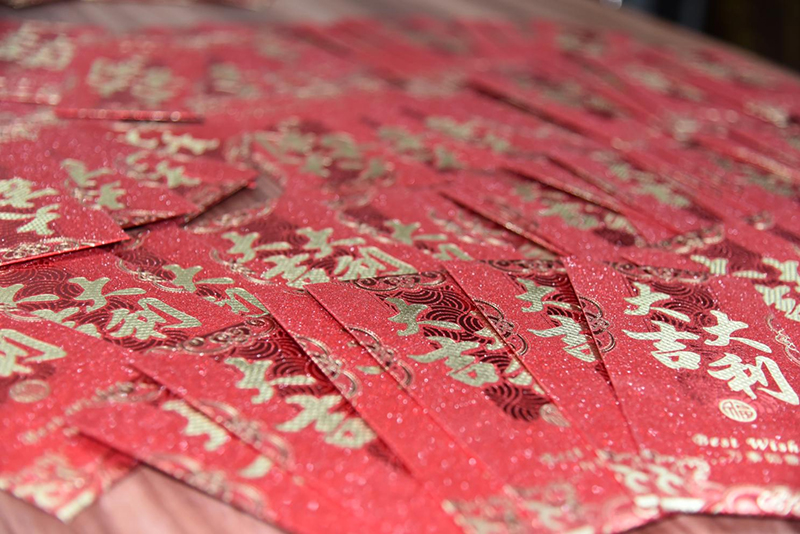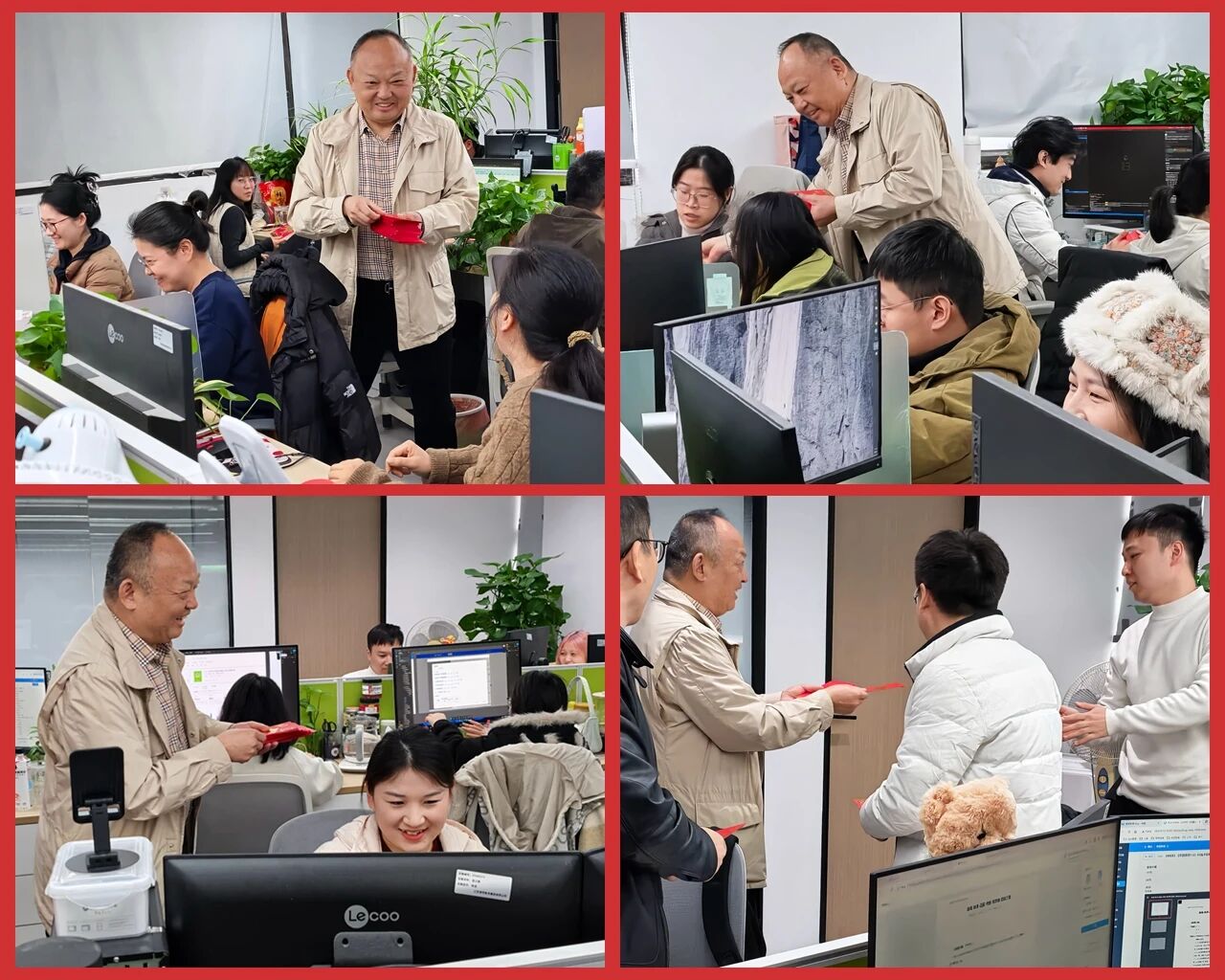 各部门负责人代表公司向员工拜年送福发红包。
