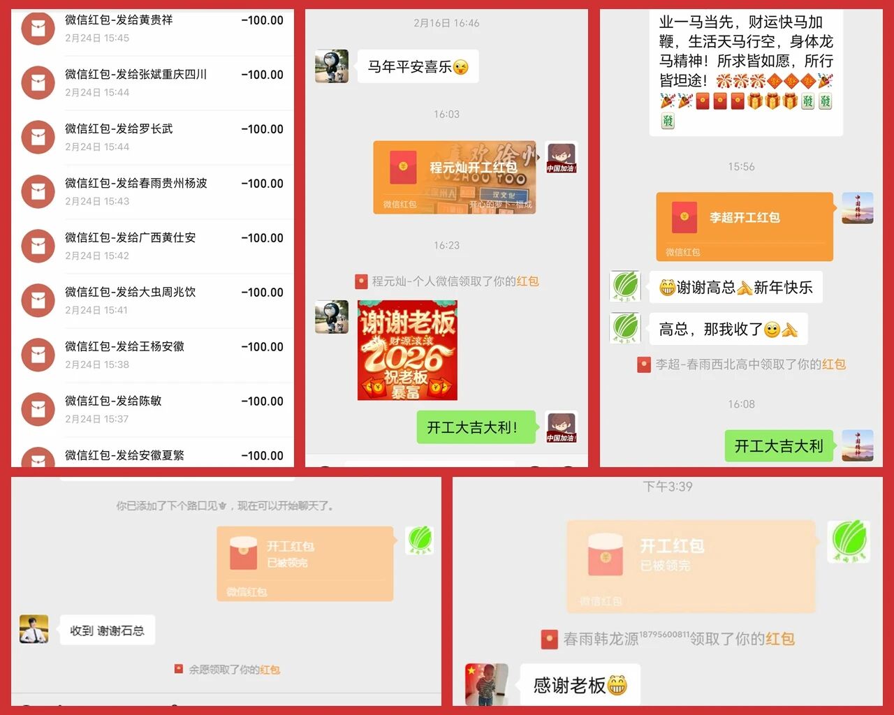 营销各部区总经理通过微信向营销一线人员发红包转达公司祝福与问候。