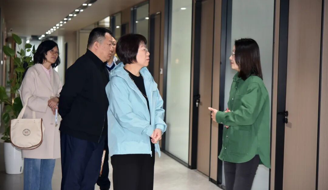 公司副总经理孔婷、束晓健陪同客人参观文化科技发展公司、教育科技公司和中小学教育事业部、社科文艺编辑部、视觉设计中心。
