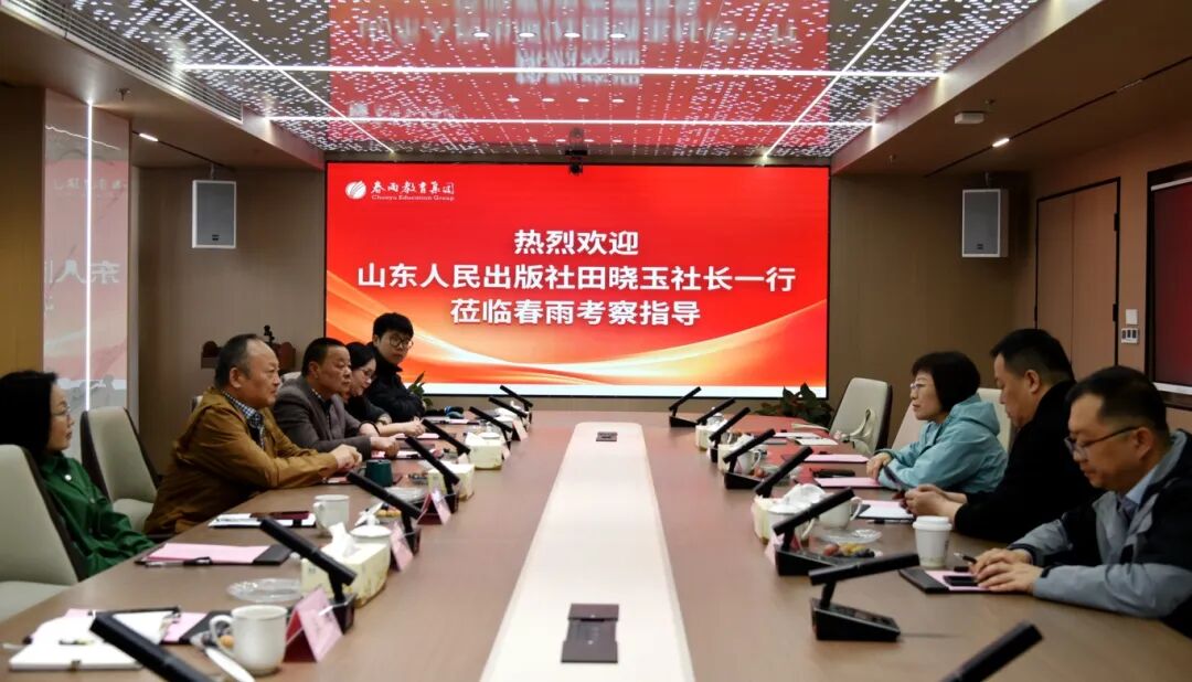 田晓玉社长详细了解春雨近年来创新转型发展的一系列动作与成果,重点就新媒体运营的打法、智慧教育板块的规划和春雨团队交流。她说,当前,管理政策调整、人工智能技术发展趋于成熟、市场竞争加剧,多重因素叠加影响行业发展形成压力,国有、民营面临的困难和问题有共性也有个性,在出版集团支持下,山东人民出版社启动了新一轮发展转型。教育出版是出版社的业务基石,数字赋能也是教育板块先行,春雨集团既是行业知名、具有规模优势的品牌公司,更是山东人民出版社有着十多年合作基础的事业伙伴,在数字赋能、内容体系建构、人才储备、营销创新等多方面,春雨在探索中积累的经验、取得的成果值得学习。希望双方能够在既有项目的基础上加强合作,并在新媒体运营、智慧教育、教育服务等领域拓展,相互融合、相互赋能,取得更多合作成果。